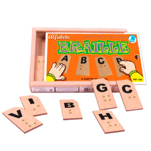 Este material de apoio auxilia no aprendizado do alfabeto em Braille, possibilitando a construção de diversas palavras.