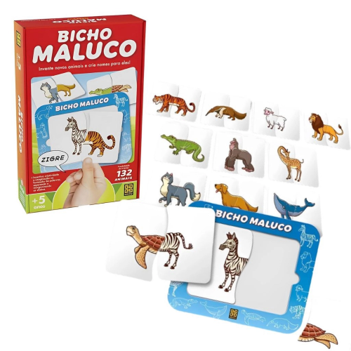 Bicho Maluco é uma atividade lúdica que auxilia na leitura e na formação de novas palavras. Enquanto brinca, a criança nomeia os animais criados com as cartelas.