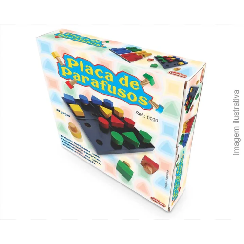 Etiquetas: Placa, parafusos, coordenação motora, sequências lógicas, cores, formas, problemas, autocontrole, 7898017038580, CARIMBRAS BRINQUEDOS