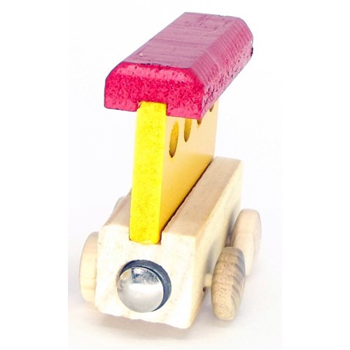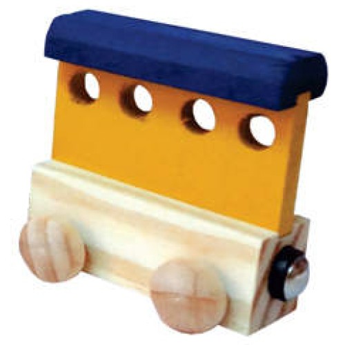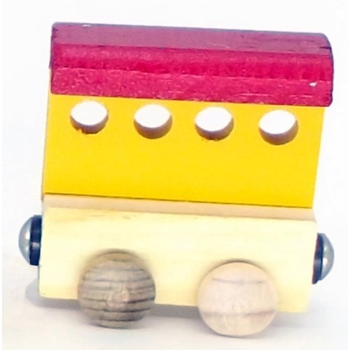 Um Vagão de Passageiro, de madeira pintada, que possui ímãs na parte anterior e posterior, o que permite ligar vagões com letras ou com a Máquina Locomotiva, vendidos separadamente, para formar: nomes de crianças, palavras diversas, nomes de escolas, entre outros.