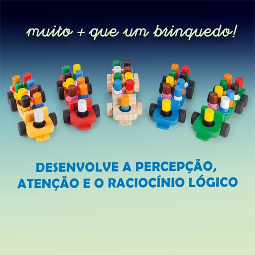 Contém: Carrinho com 9 bastões de encaixe coloridas.
