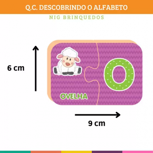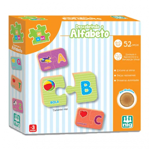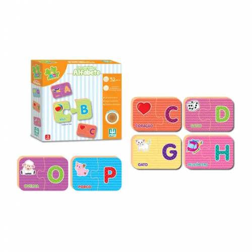 Contém 26 quebra-cabeças com 2 peças cada, totalizando 52 peças;