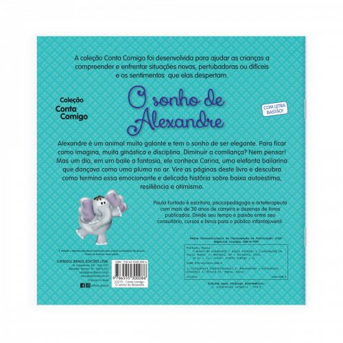 Diminuir a comilança? Nem pensar! Mas um dia, em um baile a fantasia, ele conhece Carina, uma elefanta bailarina que dançava como uma pluma no ar. Uma história sensível sobre sentimentos, autoestima e amizade. O sonho de Alexandre:Ensina valores aos pequenos de uma forma leve e divertida, levando-os a refletir sobre o modo como tratam as outras pessoas. Ajuda a desenvolver as emoções e promove a autonomia dos pequenos. Aborda temas importantes para se trabalhar em casa, na escola ou em consultório. Vire as páginas deste livro e descubra como termina essa emocionante e delicada história sobre resiliência e otimismo.