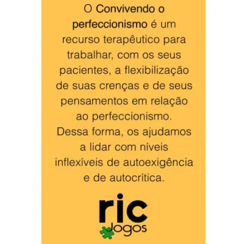 Convivendo com o Perfeccionismo é um recurso terapêutico para trabalhar, com os seus pacientes, a flexibilização de suas crenças e de seus pensamentos em relação ao perfeccionismo. Dessa forma, os ajudamos a lidar com níveis inflexíveis de auto exigência e de autocrítica.
