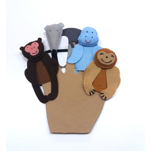 Dedoches em feltro 4 animais selvagens. Leão, tigre, elefante, macaco. Produto artesanal, pode..