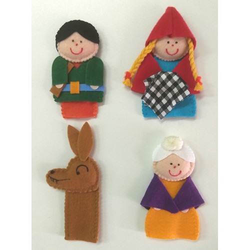 O kit é composto por 4 personagens: Chapeuzinho Vermelho, Lobo Mau, Caçador e Vovózinha. Produto artesanal, as estampas das roupas dos personagens podem variar.