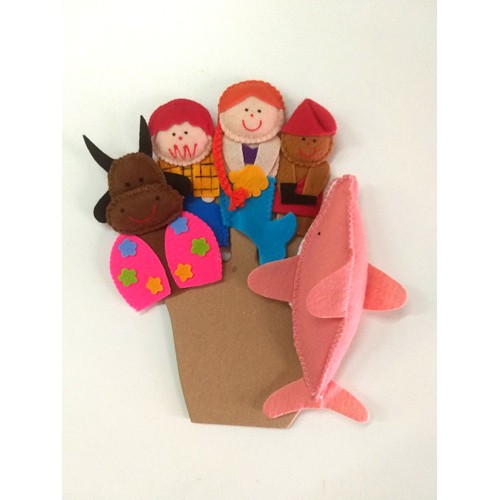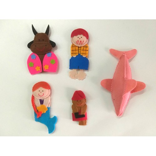 Dedoches em feltro.Composto por 4 animais: os 3 porquinhos e 1 lobo.Produto artesanal, pode conter a..