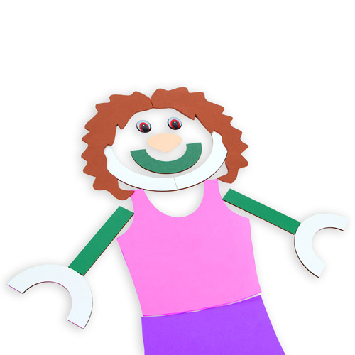 O kit traz dois personagens Titetó e Gabi, que também são construídos com as peças e auxiliam na construção da consciência corporal. O kit contém 36 fichas de transparência, que podem servir como modelo para construção das letras ou serem riscadas com marcador para quadro branco e após, apagadas com o apagador, que acompanha o kit.