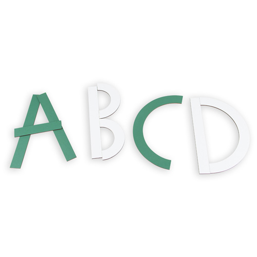 Utilizando uma linha reta e uma linha curva, as crianças podem formar todas as letras do alfabeto e os números. As linhas e curvas contém um lado branco, que pode ser riscado com marcador para quadro branco e um lado verde, que pode ser riscado com giz de quadro.