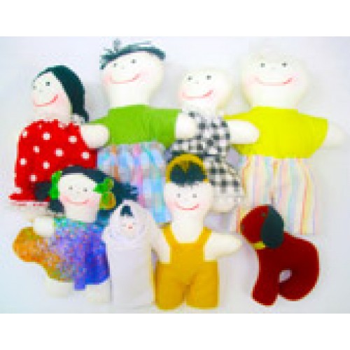 Conjunto de Fantoches Família Branca, para criar e contar histórias. Composto por: Vovó, Vovô, Papai..
