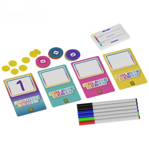 O jogador pode apostar no palpite do seu adversário, caso ele ache que foi o melhor. É bem simples, uma pessoa vai ler a pergunta da carta e todos os outros vão escrever seus palpites nas cartelas.