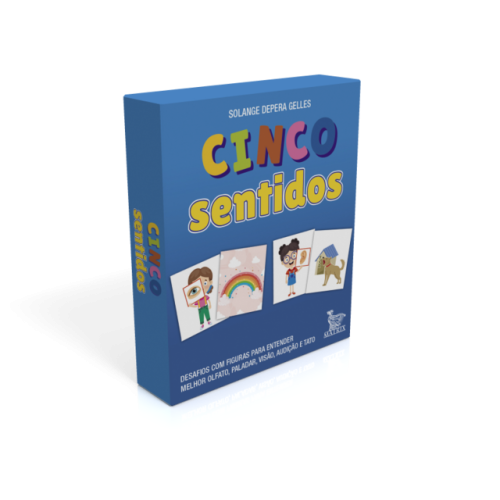 Cinco SentidosCrianças adoram desafios e conhecer os cinco sentidos atiça a curiosidade delas. Neste livro-caixinha estão 50 figuras. Cinco delas representam os sentidos: nariz (olfato), olhos (visão), boca (paladar), ouvido (audição) e mão (tato). As outras 45 são figuras que a criança deve olhar e relacionar com o respectivo sentido. Exemplo: rádio com audição. Pode até ser que uma determinada figura se relacione com mais de um sentido. Um exercício que incentiva o desenvolvimento cerebral, habilidades visuais, atenção e concentração.