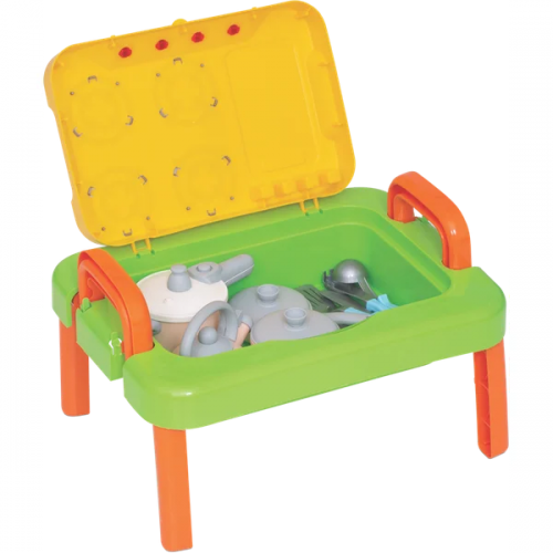 Mesa Montável Gourmet com kit de utensílios e panelas de cozinha – Mercotoys Mesa Montável Gourmet com kit de utensílios e panelas de cozinha– Mercotoys -