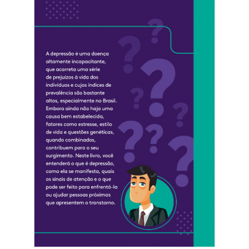 A depressão é uma doença altamente incapacitante, que acarreta uma série de prejuízos à vida dos indivíduos e cujos índices de prevalência são bastante altos, especialmente no Brasil. Embora ainda não haja uma causa bem estabelecida, fatores como estresse, estilo de vida e questões genéticas, quando combinados, contribuem para o seu surgimento. Neste livro, você entenderá o que é depressão, como ela se manifesta, quais os sinais de atenção e o que pode ser feito para enfrentá-la ou ajudar pessoas próximas que apresentem o transtorno.