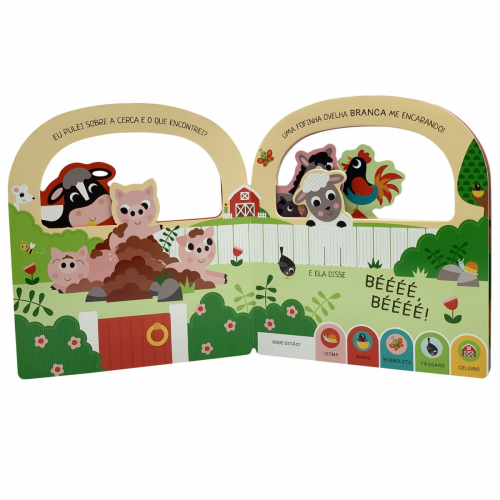 Você pode ajudar a encontrar os animais? Os pequenos vão adorar grasnar com os patinhos, relinchar com os cavalos e roncar com o porquinho! Com alças, os pequenos podem carregar este incrível livro para todos os lugares!