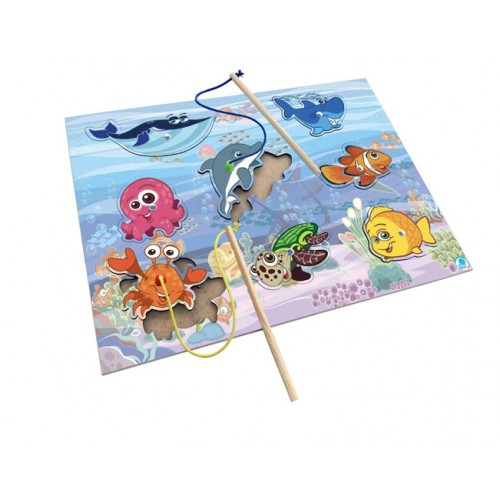 Este brinquedo convida as crianças para uma divertida pescaria no mar. Cada criança com sua vara de pescar vai descobrindo a melhor forma de pescar. É possível criar muitas variações para a brincadeira, pescar um de cada vez, pescar livremente e contar quem pescou mais, pescar um de cada vez e marcar quem pescou tudo com o tempo menor. Ao final da pescaria a criança é convidada a encaixar os peixes cada um no seu lugar, iniciando uma nova brincadeira de quebra cabeça. Com as indicações de uso é possível brincar com duas crianças ou mais.