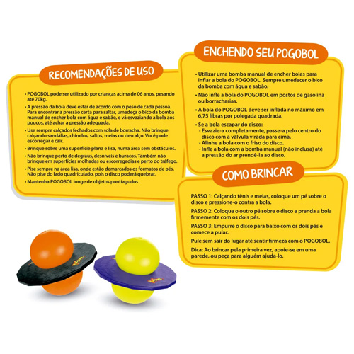 O Pogobol pode ser usado por crianças acima de 05 anos, pesando até 70 kg.