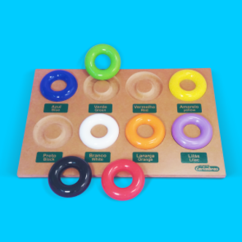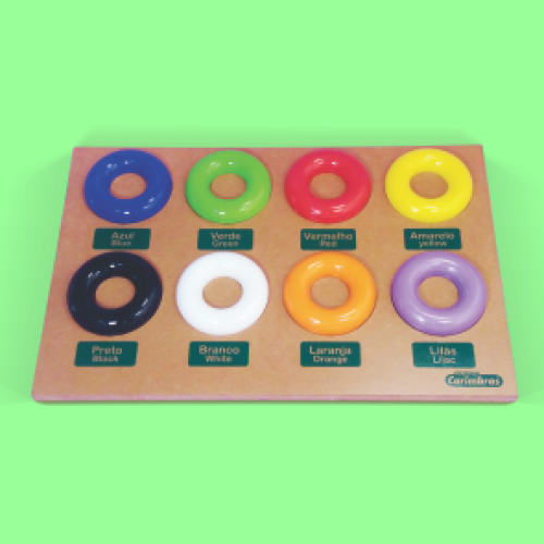 01 prancha medindo 430mm x 280mm x 30mm, com 08 argolas coloridas, cavidades que encaixam as argolas.
