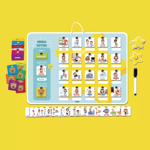 Com o quadro Minha Rotina Estrelinhas é possível propor atividades, super meta do dia, horários, conversar sobre como se sente e como incentivo conquistar estrelinhas.