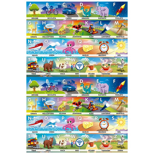 O Puzzle Alfabeto é único em sua categoria! Só ele traz ilustrações em um cenário contínuo que, além de facilitar a montagem do quebra-cabeça, torna-lo lúdico e envolvente.