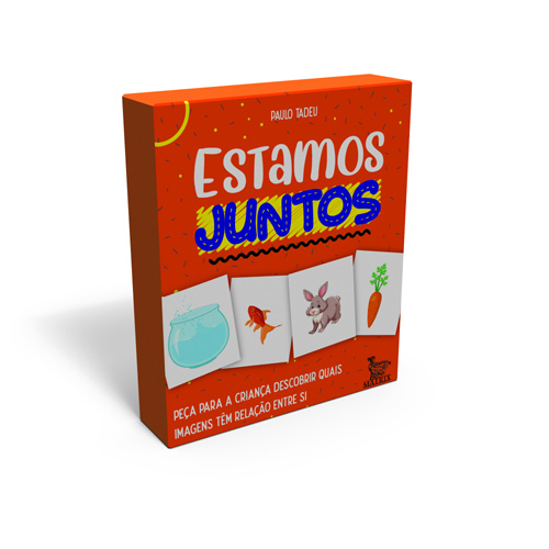 Este livro-caixinha vai desenvolver habilidades de pensamento e raciocínio das crianças de modo muito divertido. Aqui dentro estão 40 cartas com imagens. Elas formam 20 pares. A criança precisa olhar as figuras e descobrir quais têm relação entre si para formar esses pares, como um aquário e um peixinho, por exemplo.