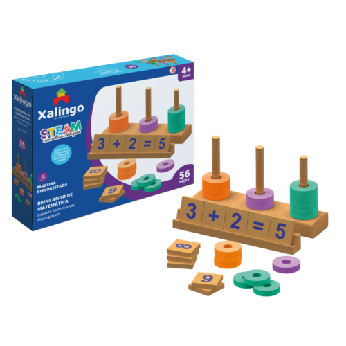 O Brincando de Matemática conta com 56 peças em madeira reflorestada e coloridas com tinta atóxica. É um brinquedo que auxilia no desenvolvimento do pensamento lógico, da coordenação motora, noção de espaço, equilíbrio e cor. Além disso, proporciona o aprendizado das operações matemáticas simples e associação de números e quantidades de forma lúdica e divertida. Indicado para criança a partir dos 4 anos.