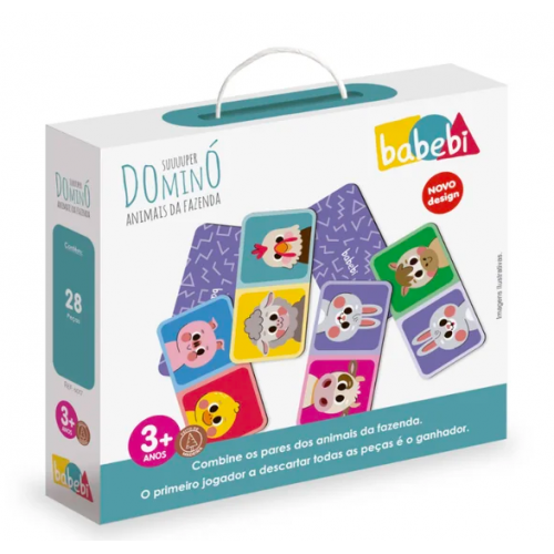 Etiquetas: Super, dominó, animais, fazenda, percepção, concentração, raciocínio lógico, atenção, 7898102626173, BABEBI BRINQUEDOS