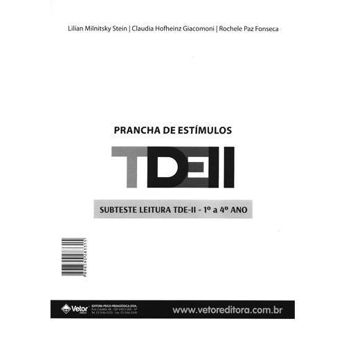 Etiquetas: TDE-II, Teste, Desempenho, Escolar, Aritmética, Leitura, Escrita, Lilian Milnitsky Stein, Claudia Hofheinz Giacomoni, Rochele Paz Fonseca, VETOR EDITORA