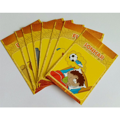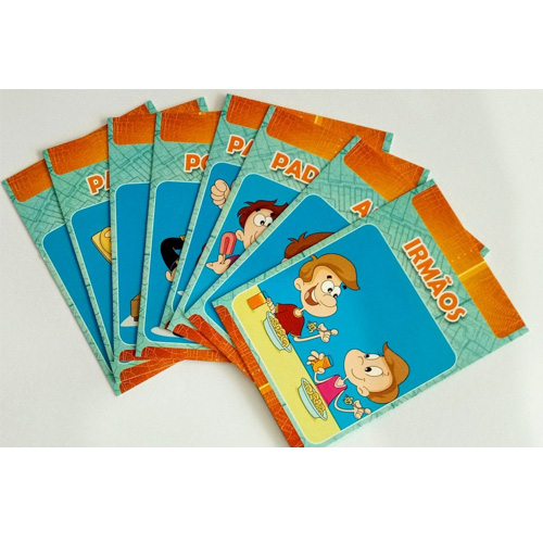O material é composto por 35 cartões “sentimentos”, 35 cartões “coisas”, 35 cartões “lugares”, 35 cartões “pessoa”, 35 cartões “ação”.