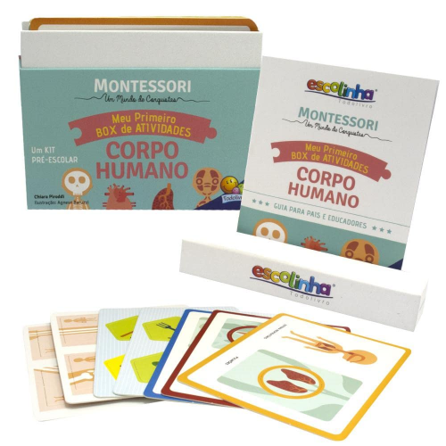 Seguindo os princípios e Método Montessori, que valoriza a criatividade e a liberdade de escolha no aprendizado, os cartões deste BOX são especialmente elaborados para estimular as habilidades cognitivas da criança em fase pré-escolar, podendo ser manuseados de forma autônoma, ou seja, sem necessidade de intervenção didática de um adulto. Instigada pela sua curiosidade, a criança vai desenvolver as habilidades necessárias para construir um fundamento sólido nos conceitos iniciais da anatomia humana e de como cada sistema do corpo e dos órgãos vitais funciona.