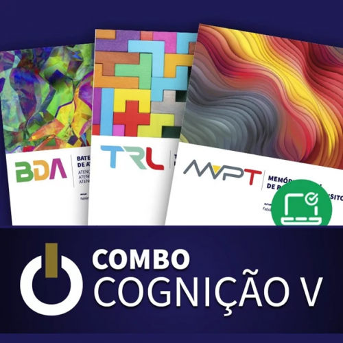 O Combo Cognição V é composto pelo teste de Memória Visual MVPT, o teste de Raciocínio Lógico TRL e pelo teste de Atenção Alternada, Concentrada e Difusa/Dividida Combo BDA de Aplicação Online.